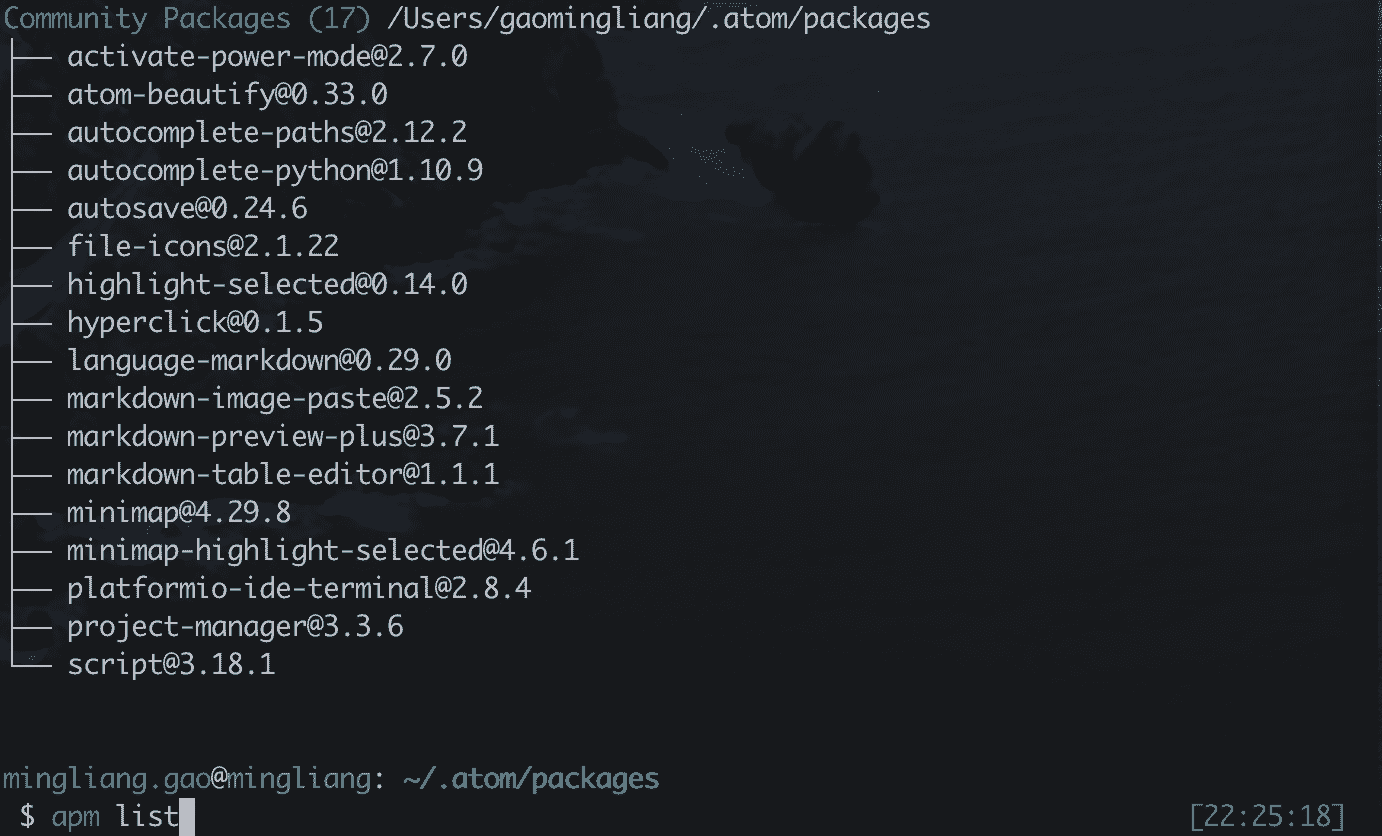 1.进入到atom的插件目录(cd ~/.atom/package),再通过git clone克隆仓库到本地