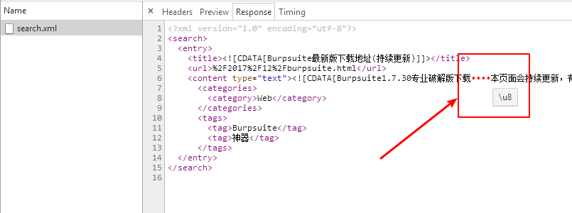 - 直接访问博客地址search.xml:http://127.0.0.1:8888/search.xml