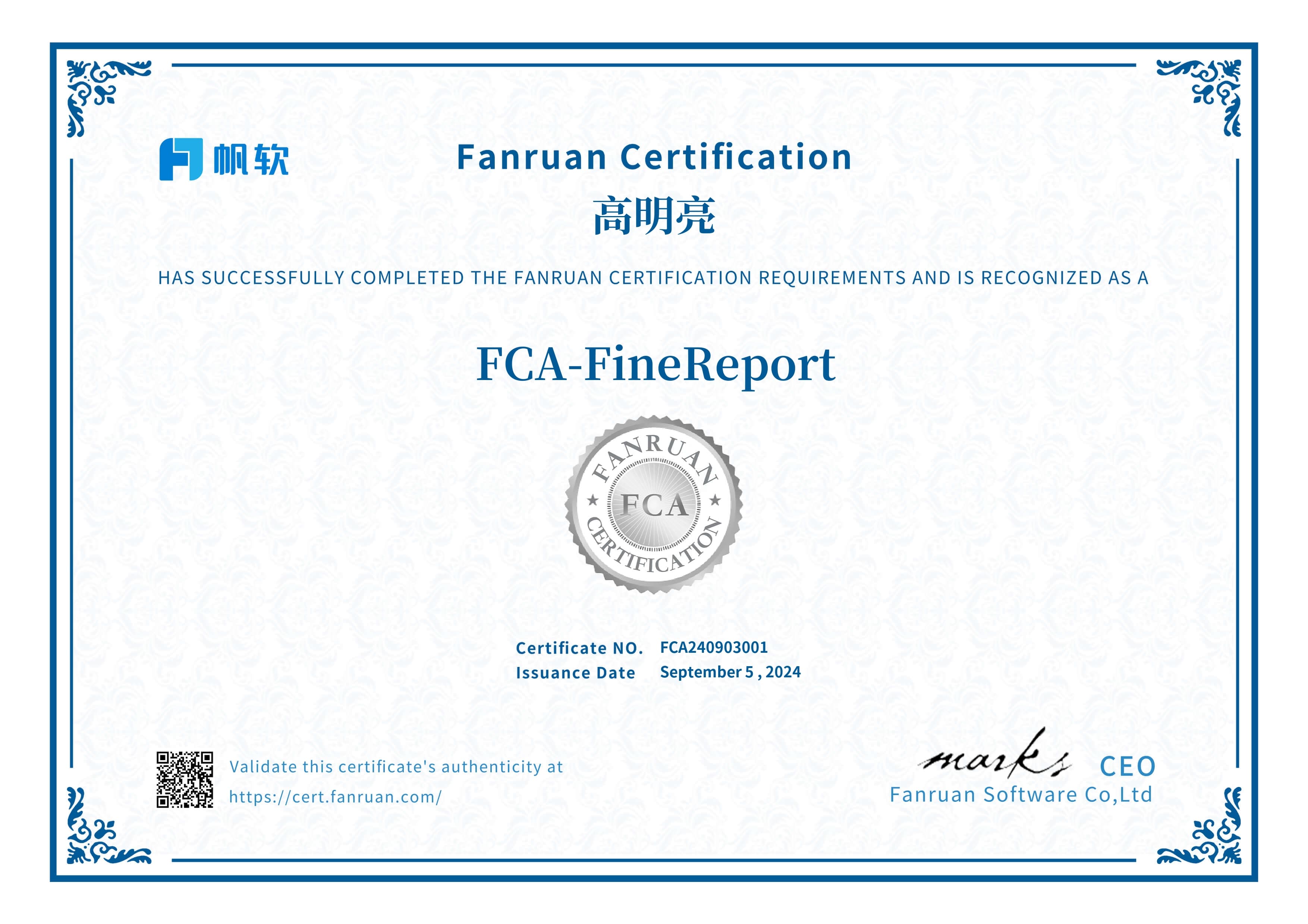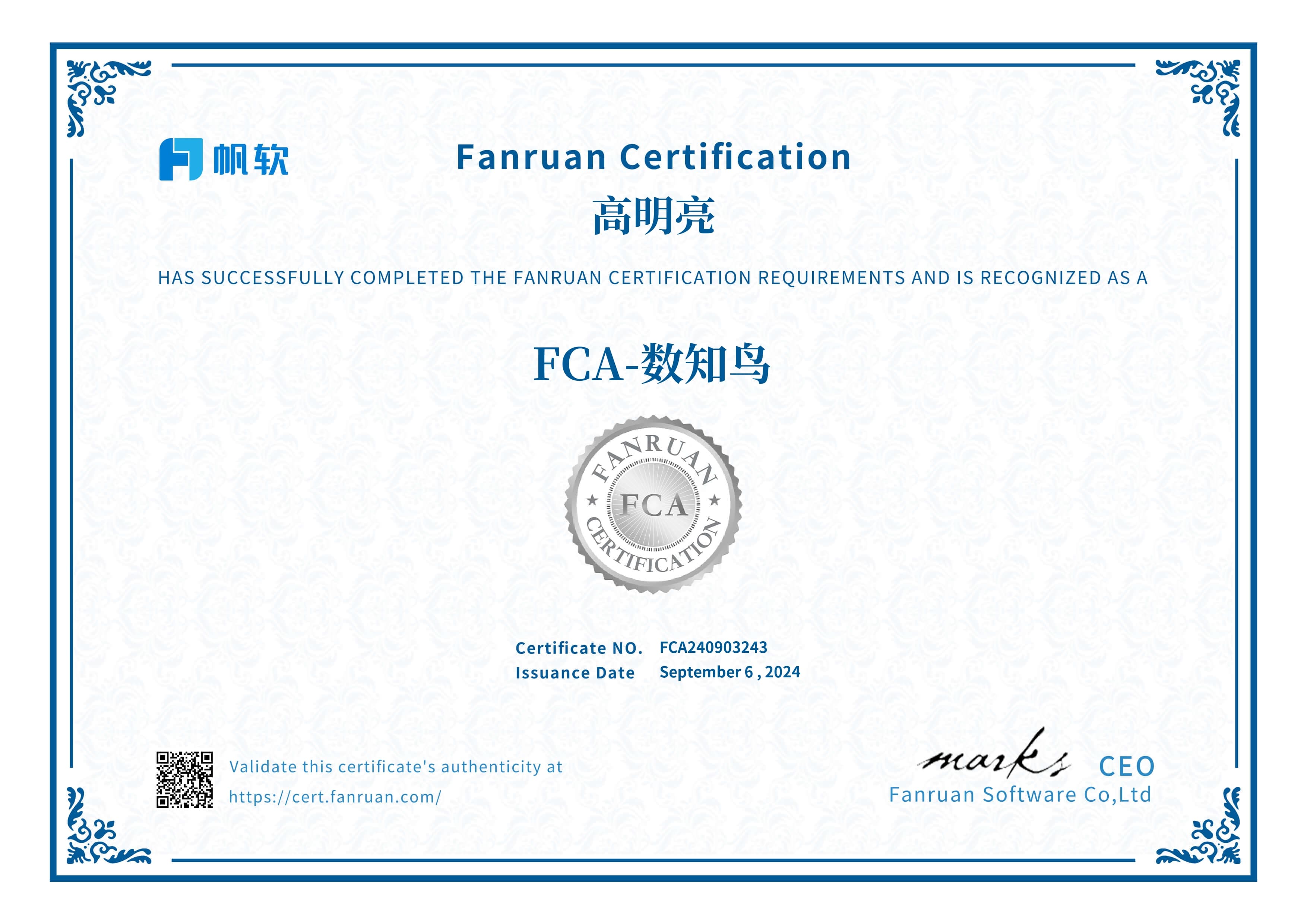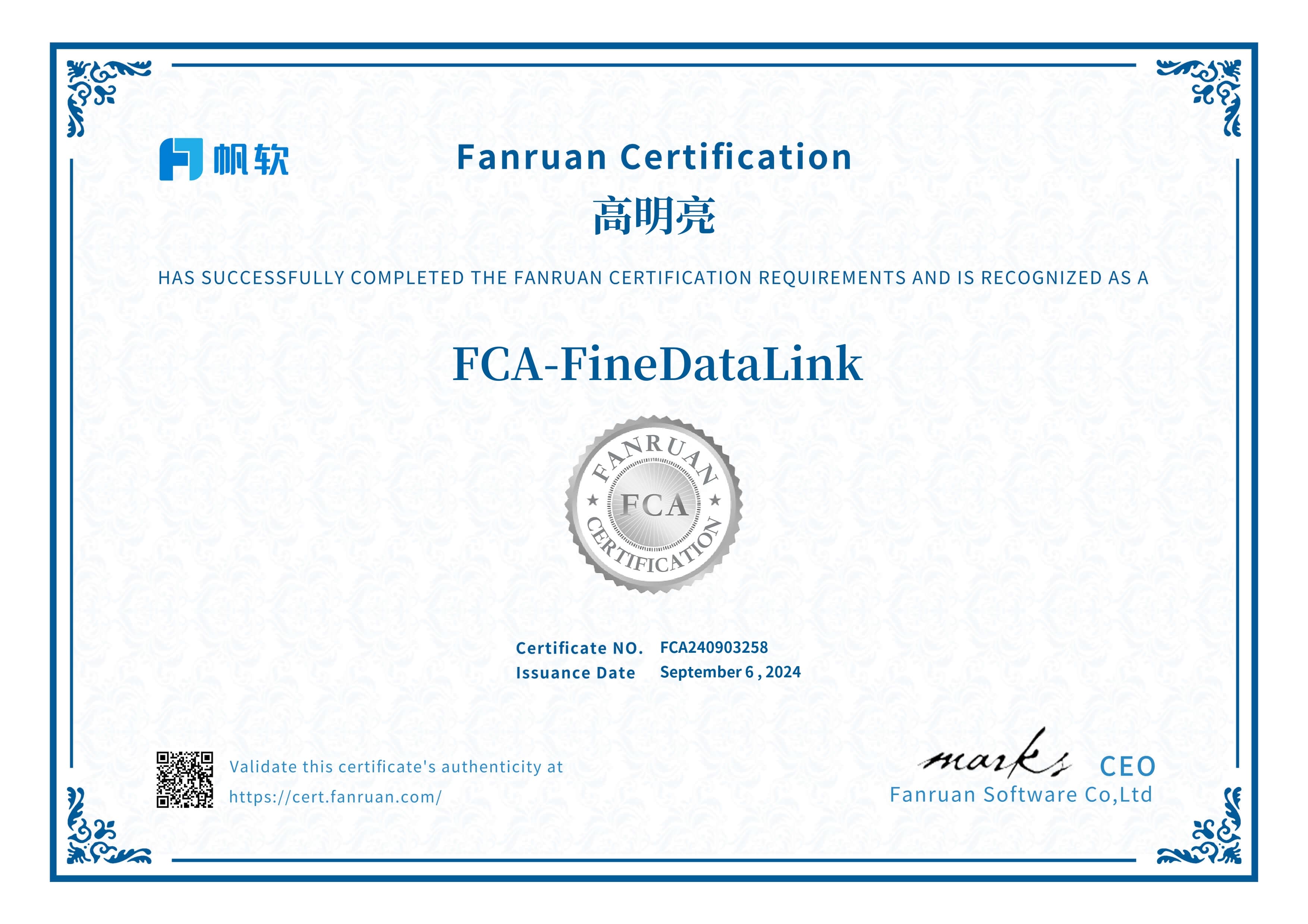 帆软FAC证书