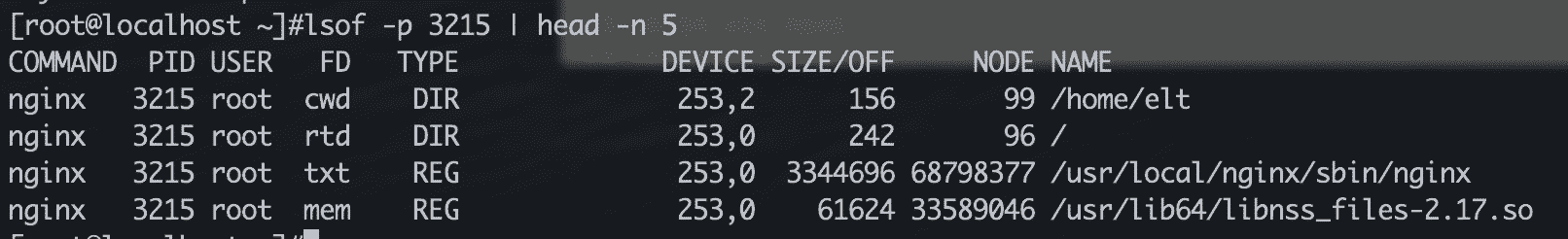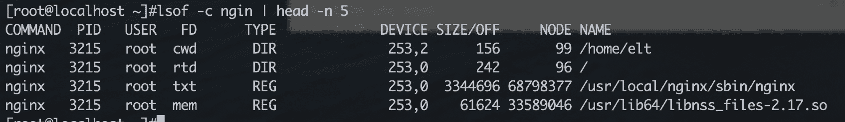 这个先简单介绍一下lsof输出信息的内容,具体格式如图: