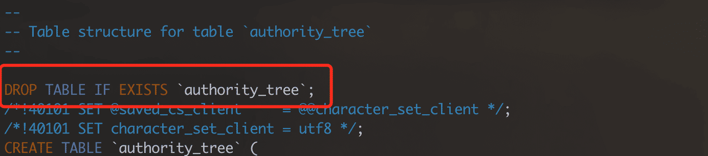 创建表之前执行drop数据表语句,默认参数,使用–skip-add-drop-table可取消。