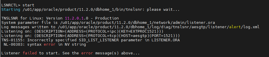 今天对线上数据库进行expdp备份,先lsntctl stop停止了监听,然后expdp进行数据库备份,备份完之后在启动监听发现直接报:TNS-01155的错误。