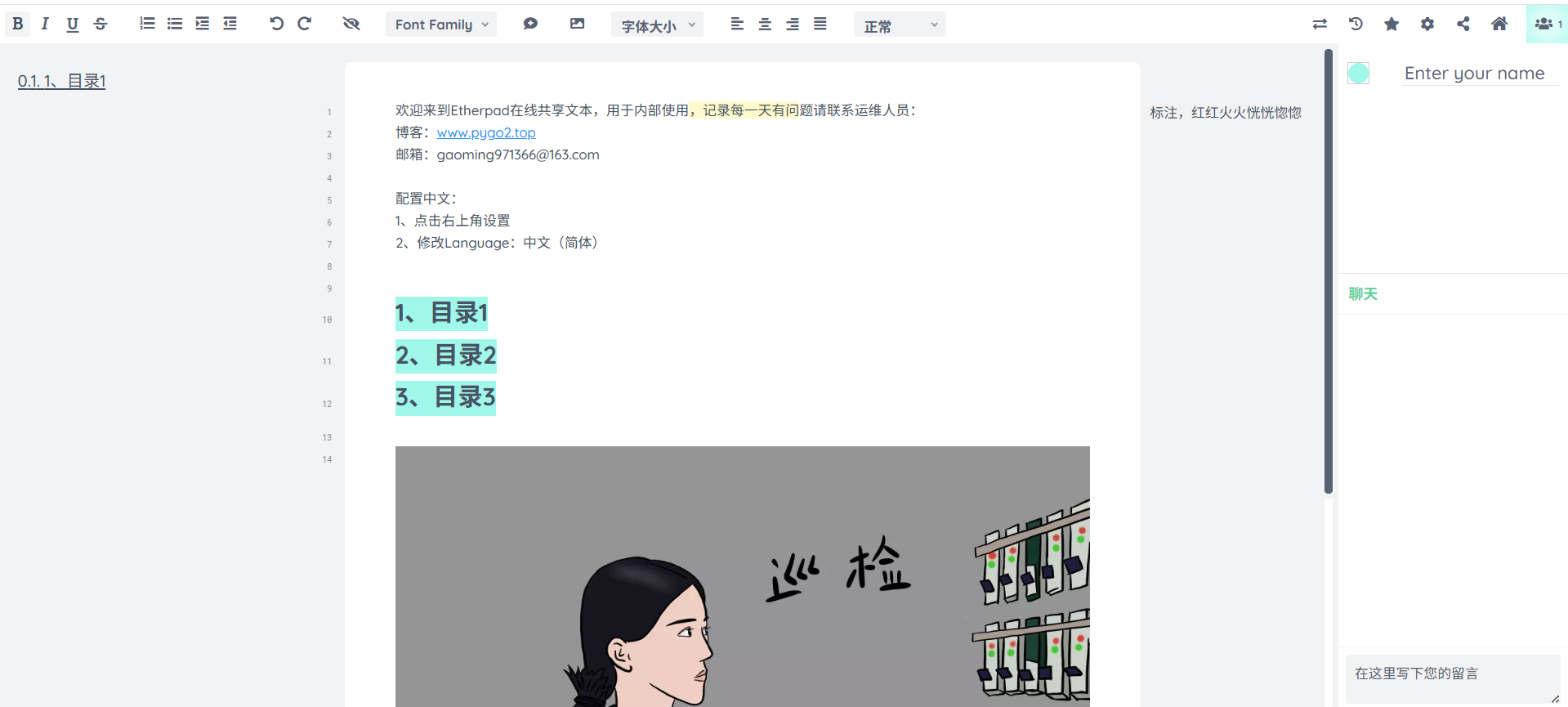 最近升级了Etherpad版本,从2.1直接升级到了2.5,关于UI界面以及后台管理功能都有了较大的升级,看了后台管理的Plugin manager功能,安装了几款插件,瞬间Etherpad编辑器高大上起来了,这里推荐一下。