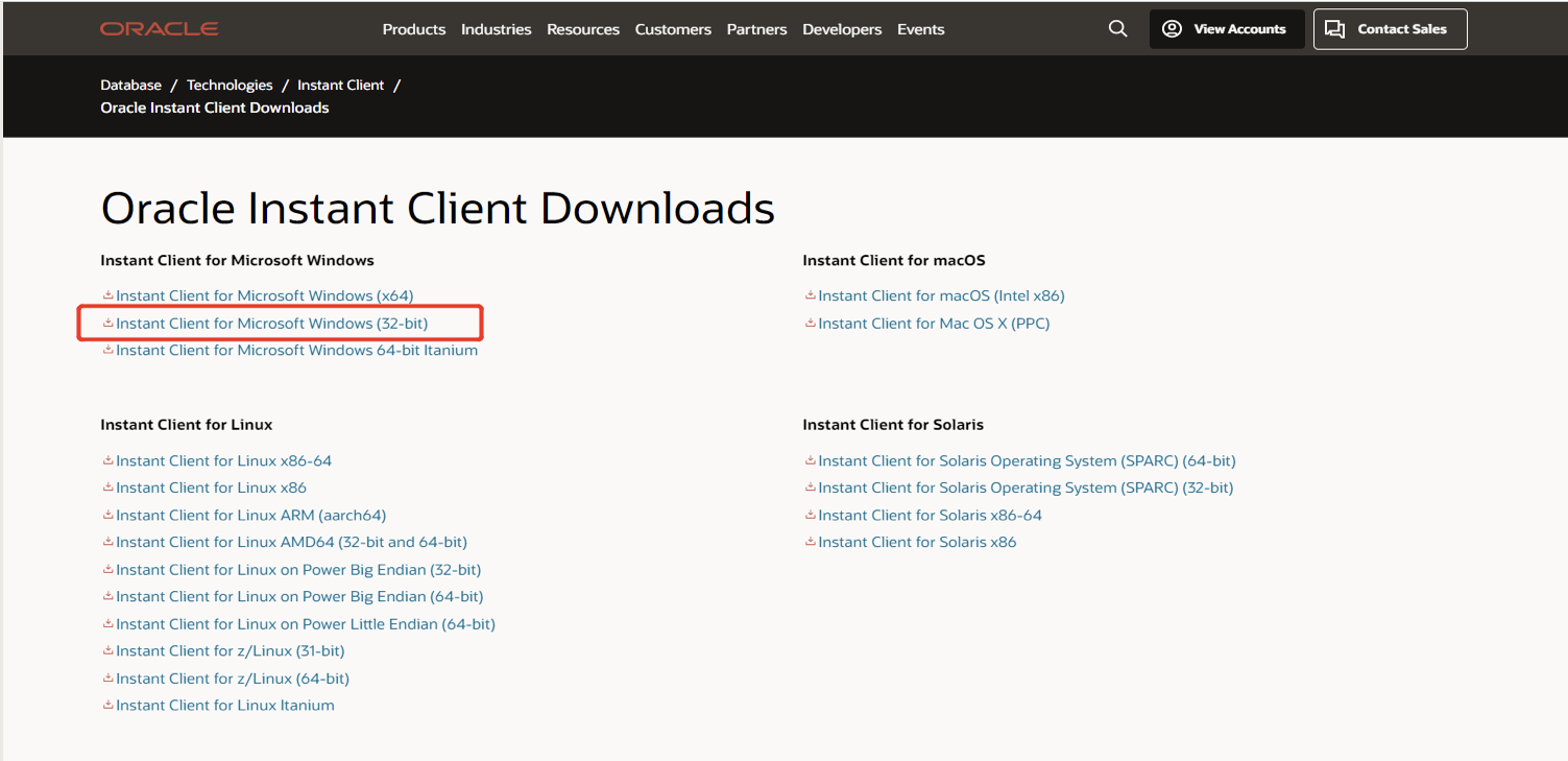 2、下载Oracle instantclient包,打开Oracle官网Instant下载地址:
