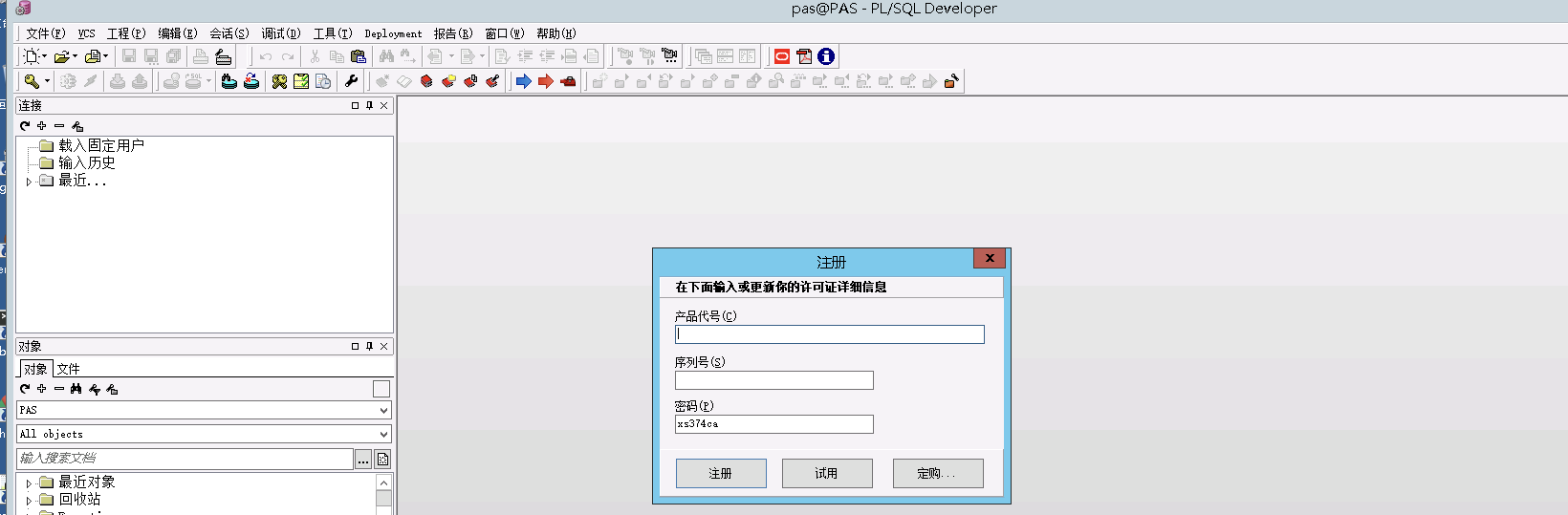 1、下载PLSQL,请自行下载PJ版本。