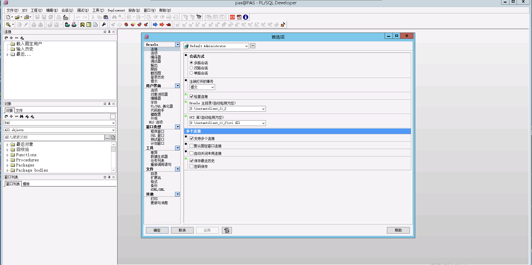 7、测试PLSQL,输入相关信息登录。