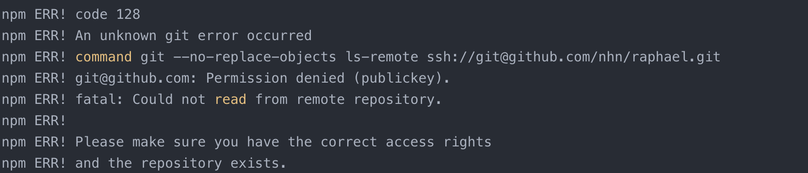 用的是vue-element-admin脚手架在macos上起来了,后来在win电脑上也下载了自己写的open2lui项目,npm install的时候发现报了code 128的错误,记录一下。