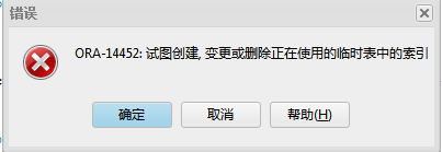 基于原来的存储过程上进行修改算法之后,发现在运行存储过程的时候报错了,一查看错误日志,发现是改了Session表结构,于是一删除操作报了以下的截图错误:ORA-14452:试图创建,变更或删除正在使用的临时表中的索引。